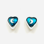 Original vintage earrings from the 90s. Silver base with clip closure and blue resin with white crystal moon appliqué.