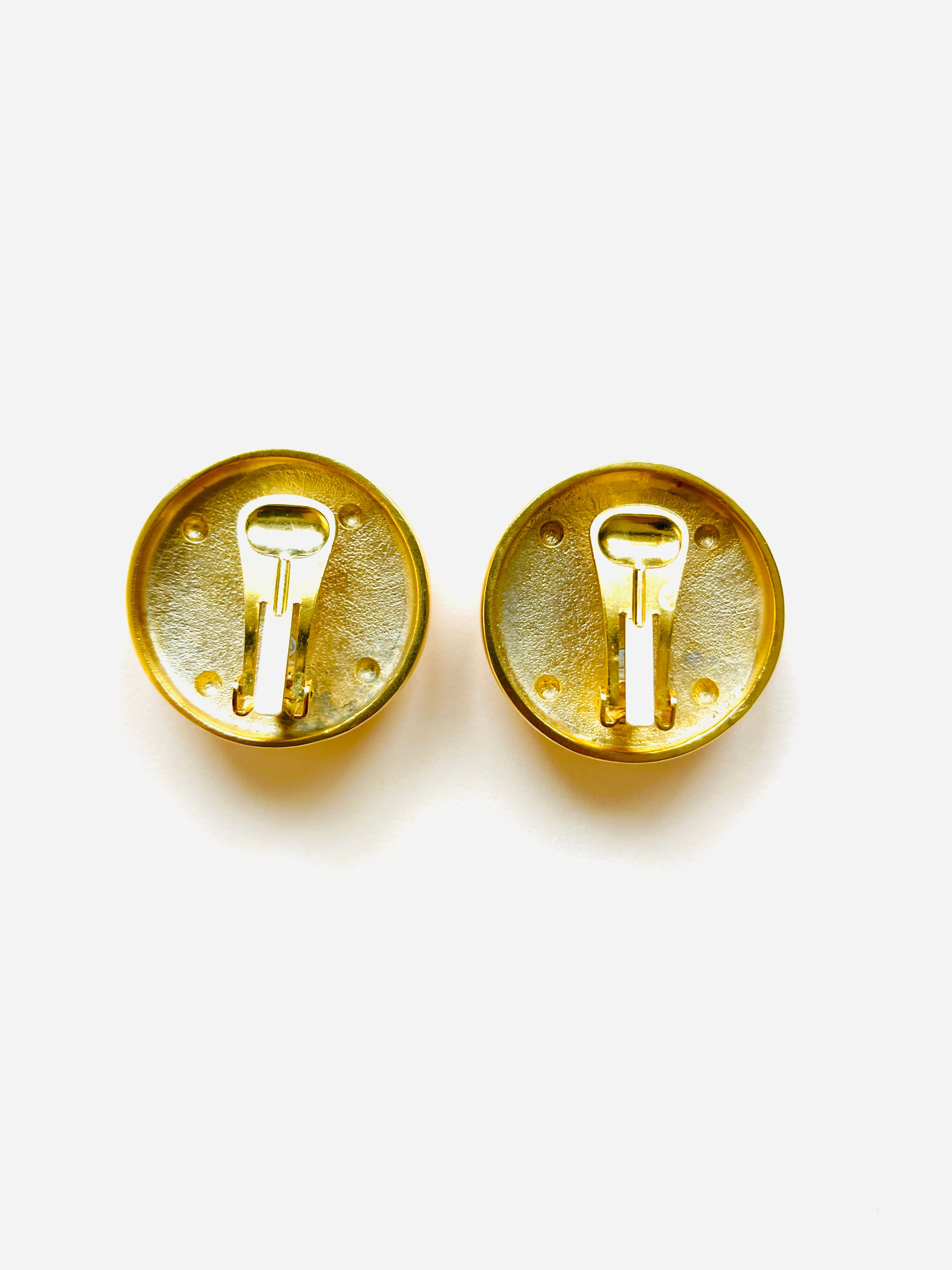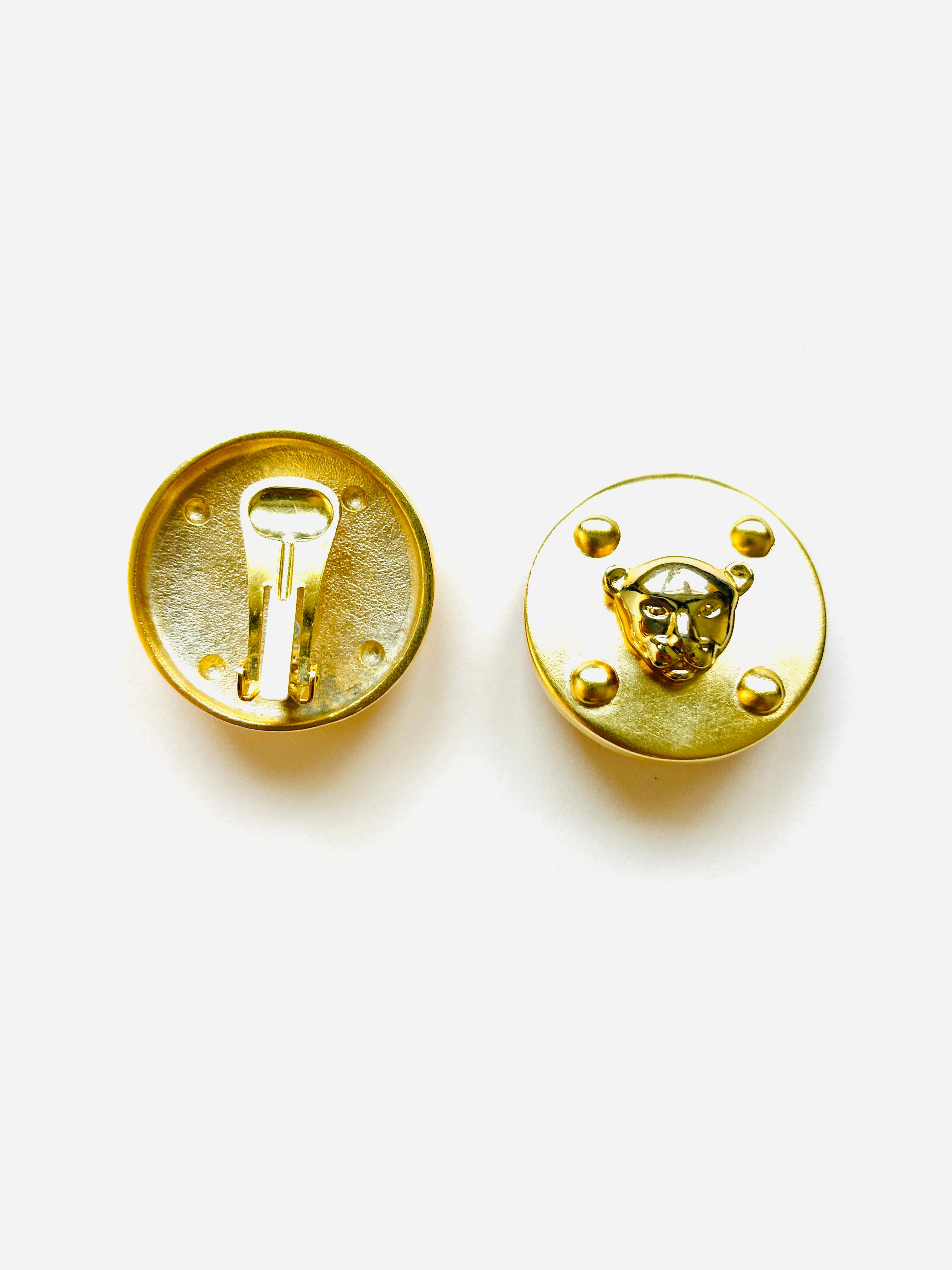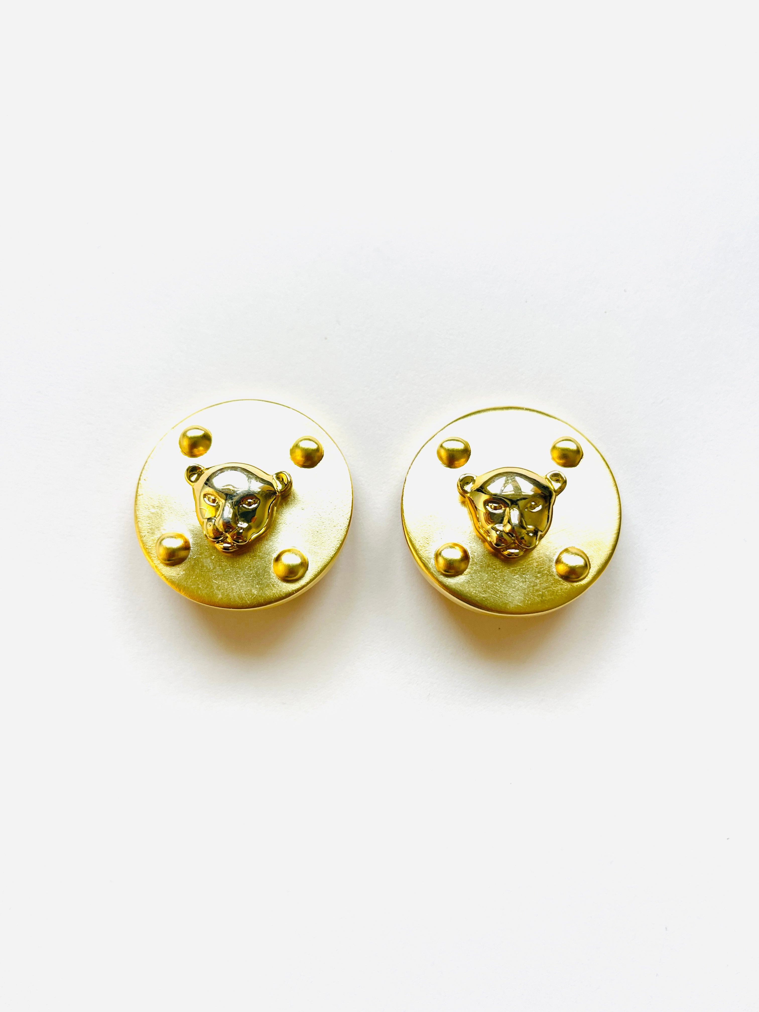 Original vintage maxi earrings from the 90s with clip closure. Round base and matte gold feline head detail.
