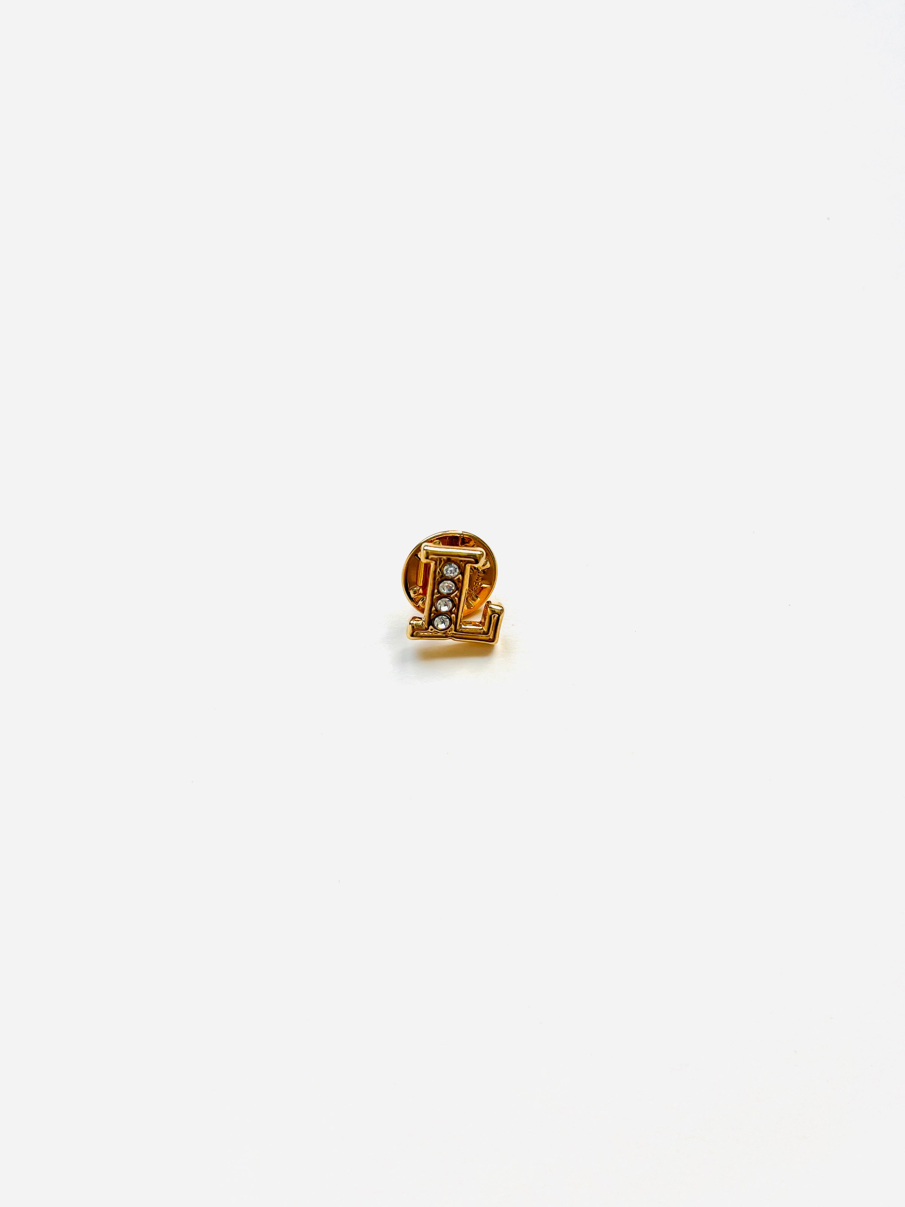 Original vintage brooch from the 90s with pin closure. Gold base in the shape of the initial L with white crystal appliqués.